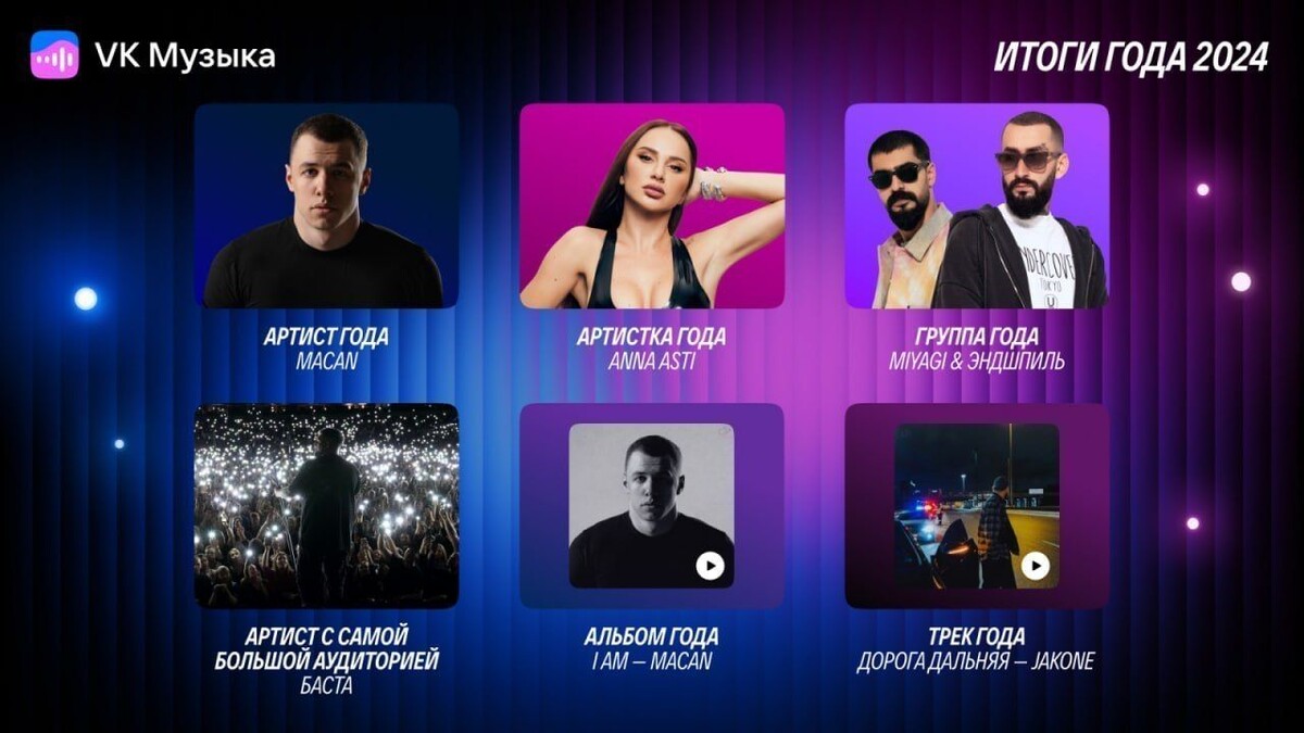 До конца 2024 года осталось чуть больше месяца, но «VK Музыка» уже подвела итоги и составила топ самых прослушиваемых песен, альбомов и артистов среди пользователей платформы из России и стран СНГ. О том, кого слушатели добавляли в плейлисты чаще всего, рассказал новостной телеграм-канал TEFI Russia. Рэпер Macan уже в третий раз побеждает в номинации «Артист года», а количество прослушиваний его песен превысило отметку в 950 миллионов. Его альбом I AM, вышедший в июле, получил более 280 миллионов стримов. «Артисткой года» по праву стала Anna Asti – ее треки прослушали более 300 миллионов раз. «Группой года» официально признали Miyagi & Эндшпиль, треки которых ежедневно находят отражение в каждом из нас. Баста стал исполнителем с самой большой аудиторией – больше 20 миллионов уникальных слушателей. «Треком года» признана «Дорога дальняя» в исполнении Jakone. Награду «Тренд года» забрали uniqe, nkeeei, Artem Shilovets и Wipo за хит «Гламур». Напомним, ранее мы писали, что петербурженка з