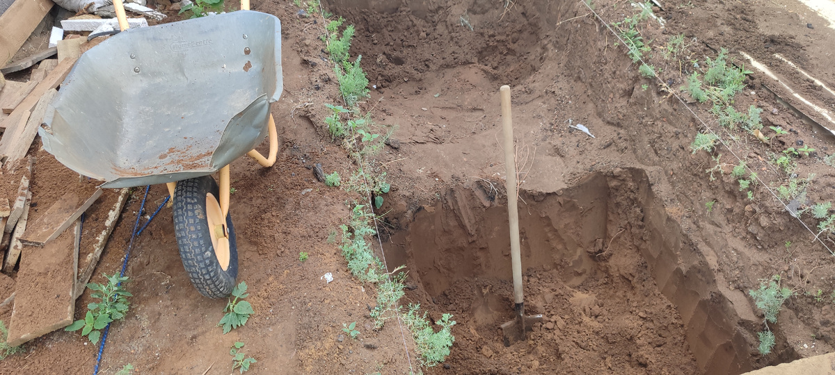 Ещё я планировал заложить полипропиленовую трубку для подачи воздуха из компрессора, что я сделать забыл. Компрессор будет стоять в погребе, который тоже нужно было выкопать, но только на глубину 3х метров.