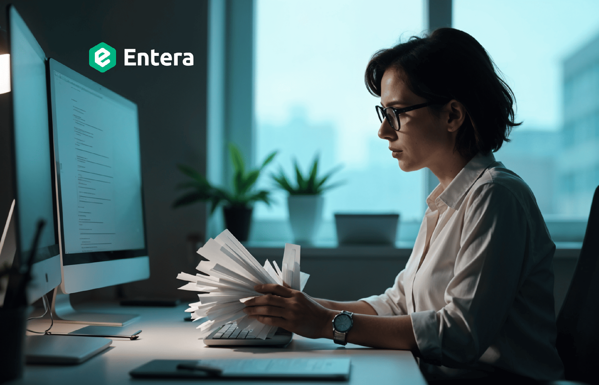 Нужно войти в свою личный кабинет на сайте entera.pro или app.entera.pro/mobile, нажать кнопку «Сканировать QR-код» и выбрав ручной ввод чека, ввести информацию. После этого отправить чек на распознавание