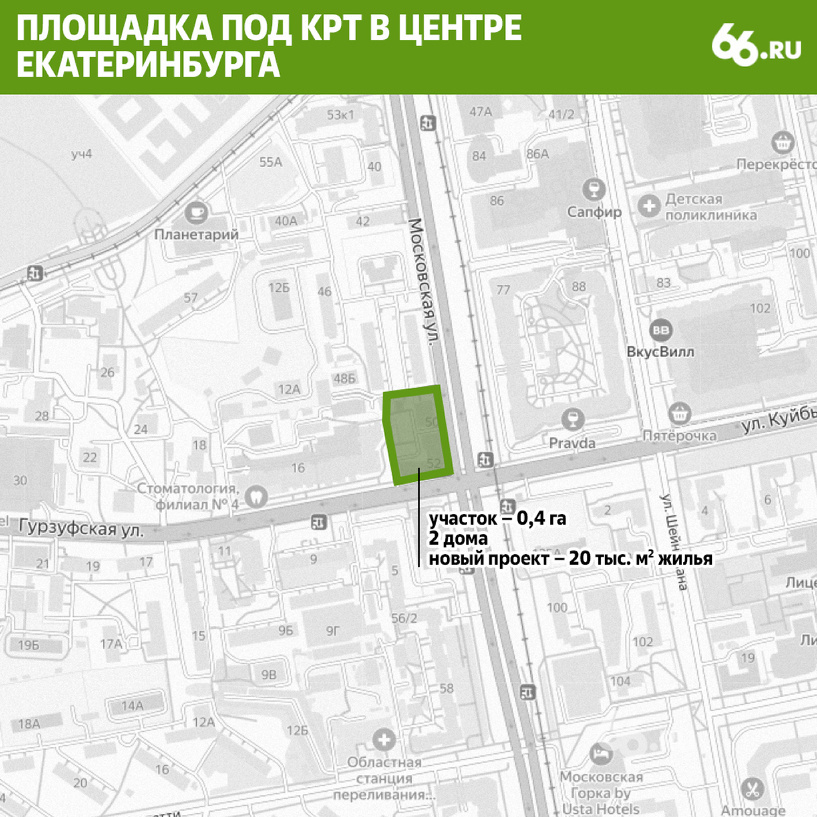 Торги по площадке в районе улиц Московской и Гурзуфской стали самыми длительными по программе комплексного развития территорий (КРТ) Екатеринбурге. Девелоперы борются за участок площадью 0,4 га на Московской горке. Аукцион стартовал утром в понедельник, 25 ноября, со ставки 101,6 тыс. рублей. К обеду четверга, 28 ноября, участники торговались на уровне 32 млн рублей (это в 313 раз выше стартовой цены). Такая продолжительность аукциона объясняется невысокой стартовой стоимостью площадки и маленьким шагом (за раз можно поднять ставку на 5 тыс. рублей). До этого рекорд принадлежал торгам за площадку возле Основинского парка. Тогда группе «Самолет» потребовалось трое суток, чтобы перебить предложения конкурентов. Победитель должен расселить и снести два двухэтажных дома 1950-х годов постройки. На их месте ему разрешат возвести 20,6 тыс. кв. метров жилья. Кроме того, застройщика обяжут провести реконструкцию детского сада № 338, находящегося через дорогу. Реновация должна быть завершена в т