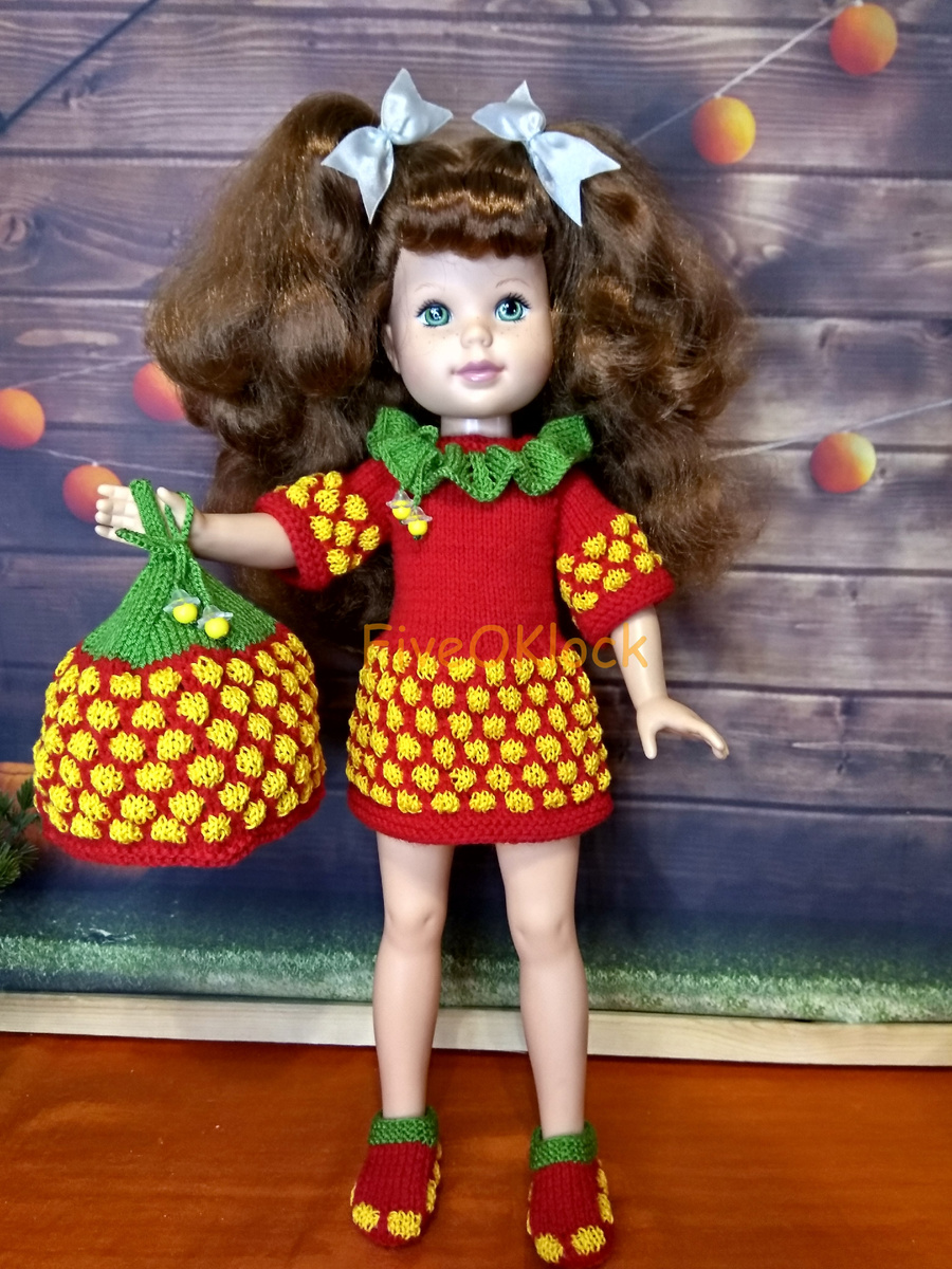 Размер рассчитан на куклу формата My Beautiful Doll от Hasbro (на фото). Может подойти кукле типа Nancy от Famosa и подобным. Создать наряд можно и более крупным куклам (Baby Born), но в этом случае число петель необходимо пересчитать.