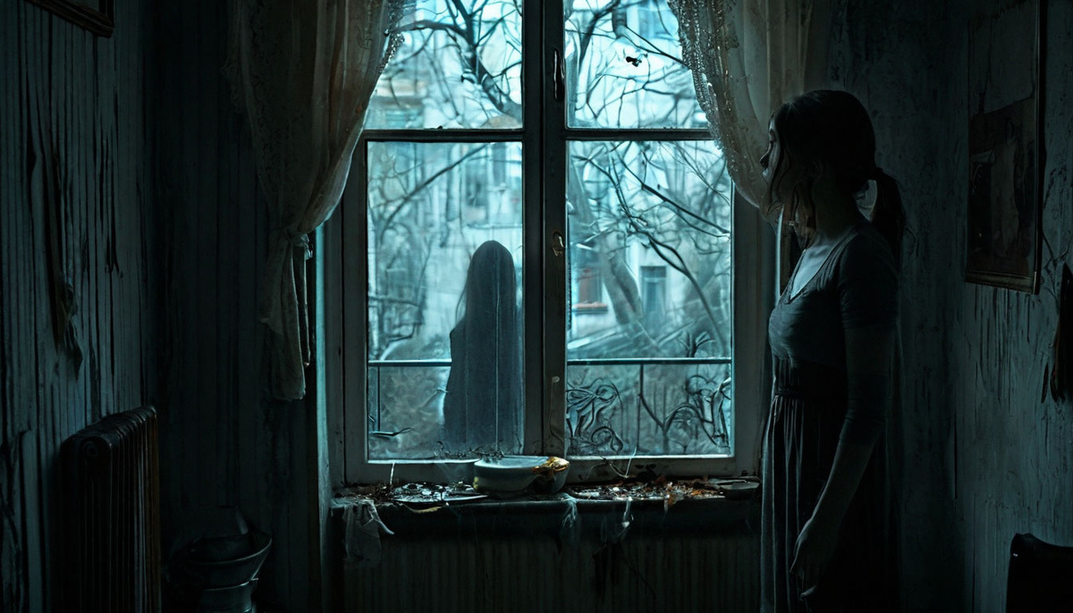 На улице никого не было, только ветки дерева скребли по стеклу. Внезапно позади неё раздался тихий шорох. Настя обернулась и увидела силуэт в конце коридора. Сердце замерло.