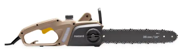 Следующая модель, о которой нельзя не упомянуть – NOCORD NCS-1600.35.S. Электрическая цепная пила предлагает современные решения в области безопасности, включая тормоз цепи, защитный щиток задней рукоятки и блокировку от непреднамеренного запуска. Преимуществом этой модели является возможность эксплуатации в помещениях, так как она не выделяет вредных веществ.