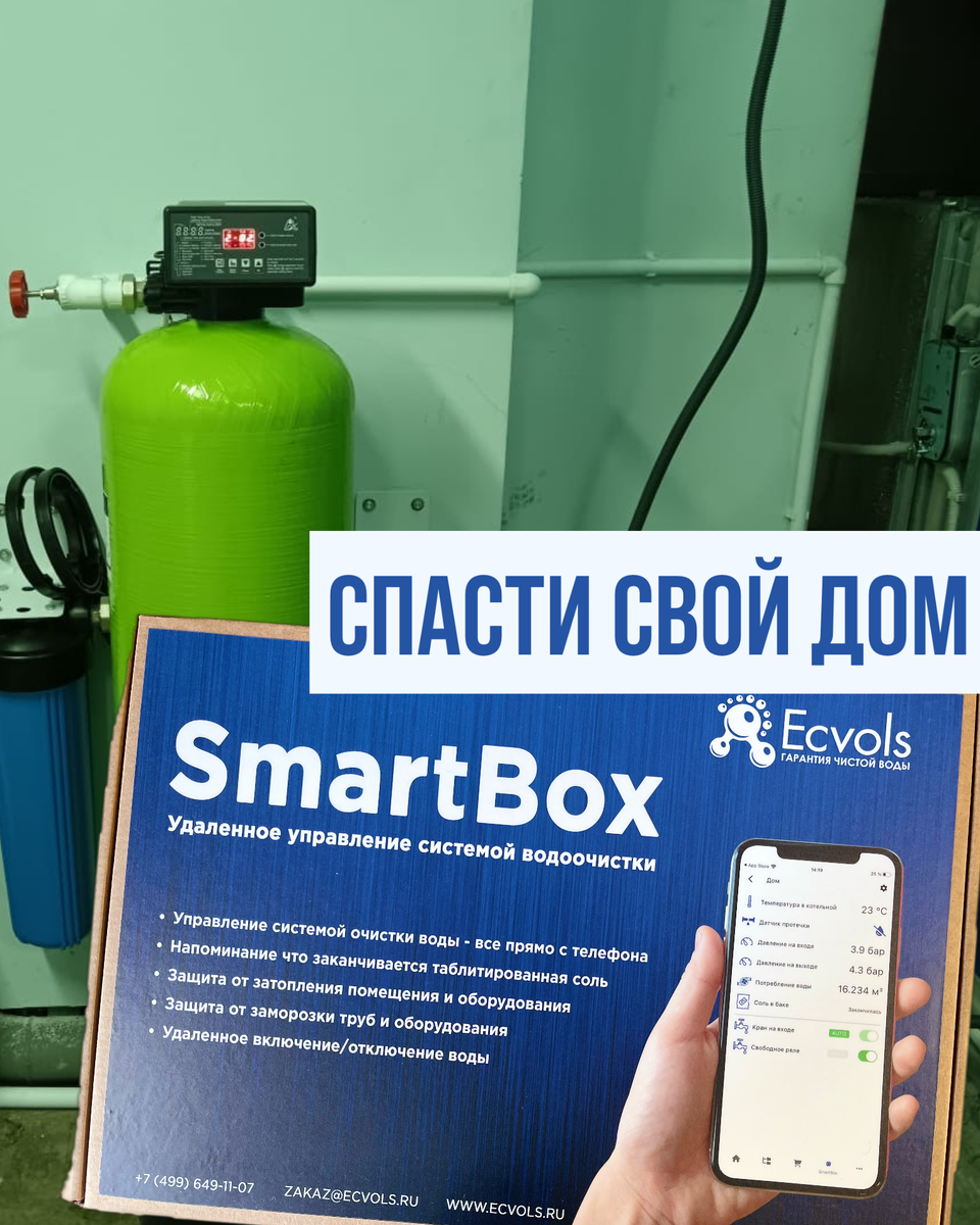 Самое первое, разумеется, что на поверхности - это сигнализация о протечке. Протечка, сами знаете, может быть явная, громкая, где её все слышали, а может быть скрытая, достаточно тихая, которая постепенно начинает портить отделочные материалы и приносить вред конструкции дома. "Смарт Box" разумеется, эту историю исключает и позволяет на ранних стадиях предотвратить и ликвидировать все последствия этой аварии.
