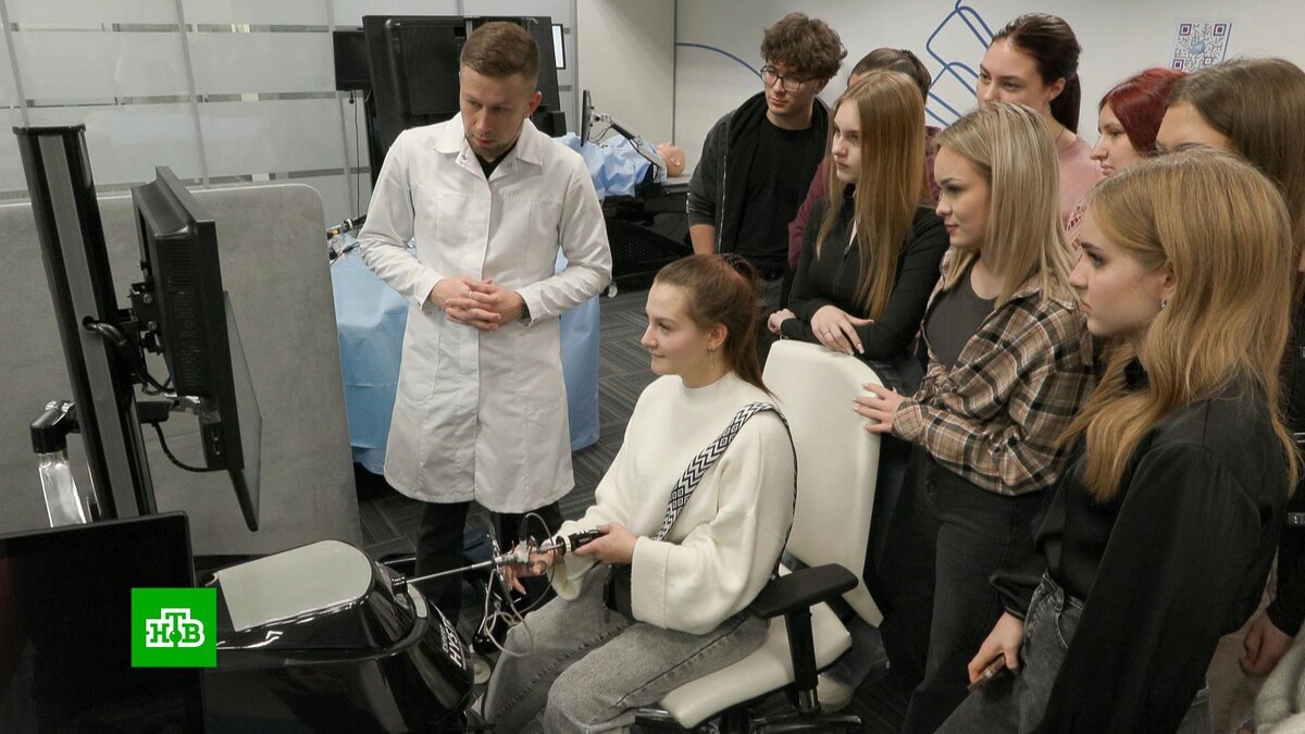 [ Смотреть видео на сайте НТВ ] В Москве в рамках бесплатных программ проекта «Город открытий» школьники со всей страны могут познакомиться с профессиями будущего. На специальном симуляторе специалисты отрабатывают различные малоинвазивные операции. С помощью манипуляторов, имитирующих камеру и инструмент хирурга, можно изучить брюшную полость и попытаться обнаружить причину виртуального недуга. Как и во время реальной операции, весь процесс отображается на экране. Работа на таких тренажерах позволяет отточить навыки и в будущем избежать ошибок, о которых аппарат предупреждает характерным звуком. В рамках образовательно-туристического проекта «Город открытий» попасть в медкластер «Сколково» и познакомиться с современными подходами в медицине могут школьники из разных регионов России и ближнего зарубежья. Специалисты не только знакомят ребят с новыми технологиями, но и показывают практические лайфхаки. К примеру, делать массаж сердца лучше всего под песню Stayin' Alive. Алексей Ефимов,