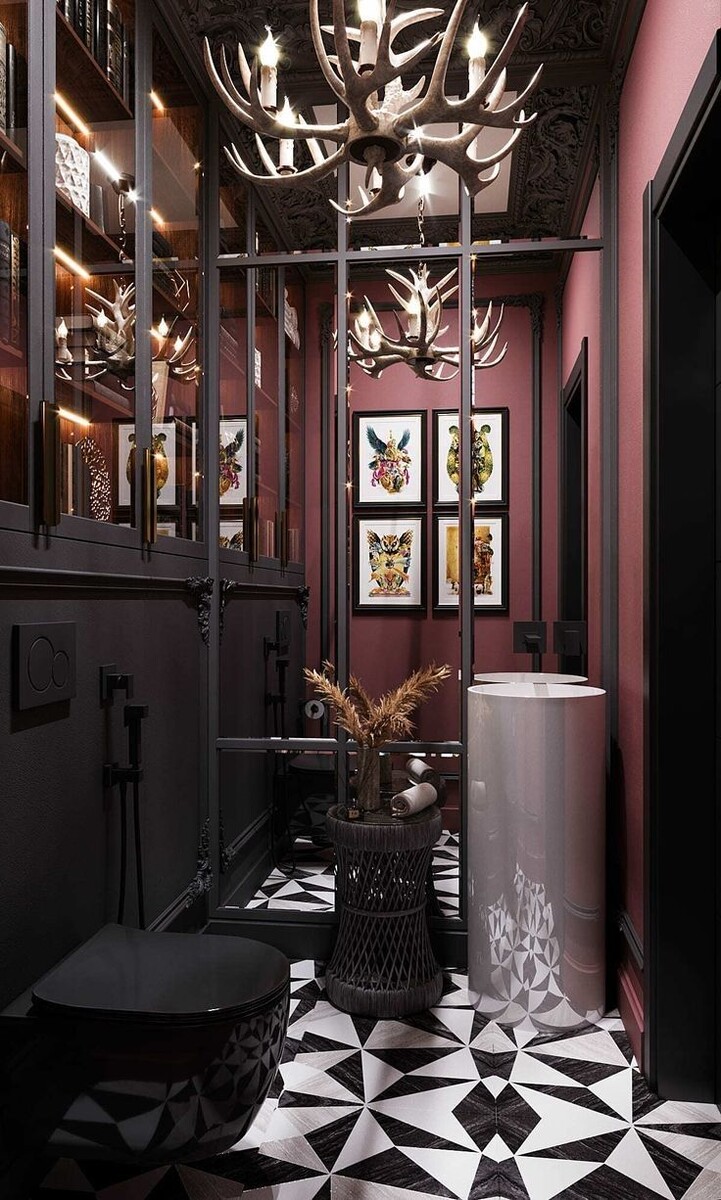 Большая подборка дизайна интерьера санузла и ванной в бордовом цвете.