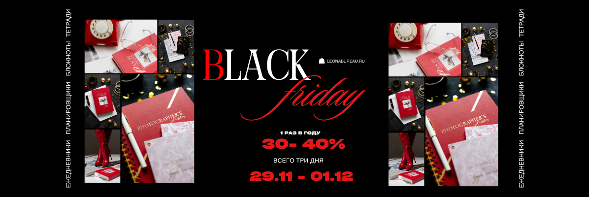 Черная пятница 2024 в LeonaBureau Скидки 29.11 по 01.12 до 40% https://leonabureau.ru/product-category/present-box/ Черная пятница в Санкт-Петербурге от LeonaBureau — это возможность, которую просто нельзя проворонить! Вы ждали этого момента целый год! Не забывайте, что такие значительные скидки бывают лишь раз в год. Черная пятница в СПб: Ключ к вашему успеху! Приготовьтесь к эксклюзивному событию, которое происходит только один раз в год! С 29 ноября по 1 декабря в нашем магазине Leona Bureau вас ожидает Черная пятница с шокирующими скидками от 30% до 40% на наши модные ежедневники и планировщики! На сайте и в шоурум!!! 1 раз в году у нас такие роскошные скидки! ТРИ дня! 29,30 ноября и 1 декабря Подготовьте волшебный подарок, заряженный на успех. Себе любимой или в подарок на Новый Год. Долгожданная коробочка, шикарная упаковка, эстетичный подарок для бизнеса и достижения целей, решать только вам! Выбор огромный, главное — успеть! https://leonabureau.ru/product-category/present-bo