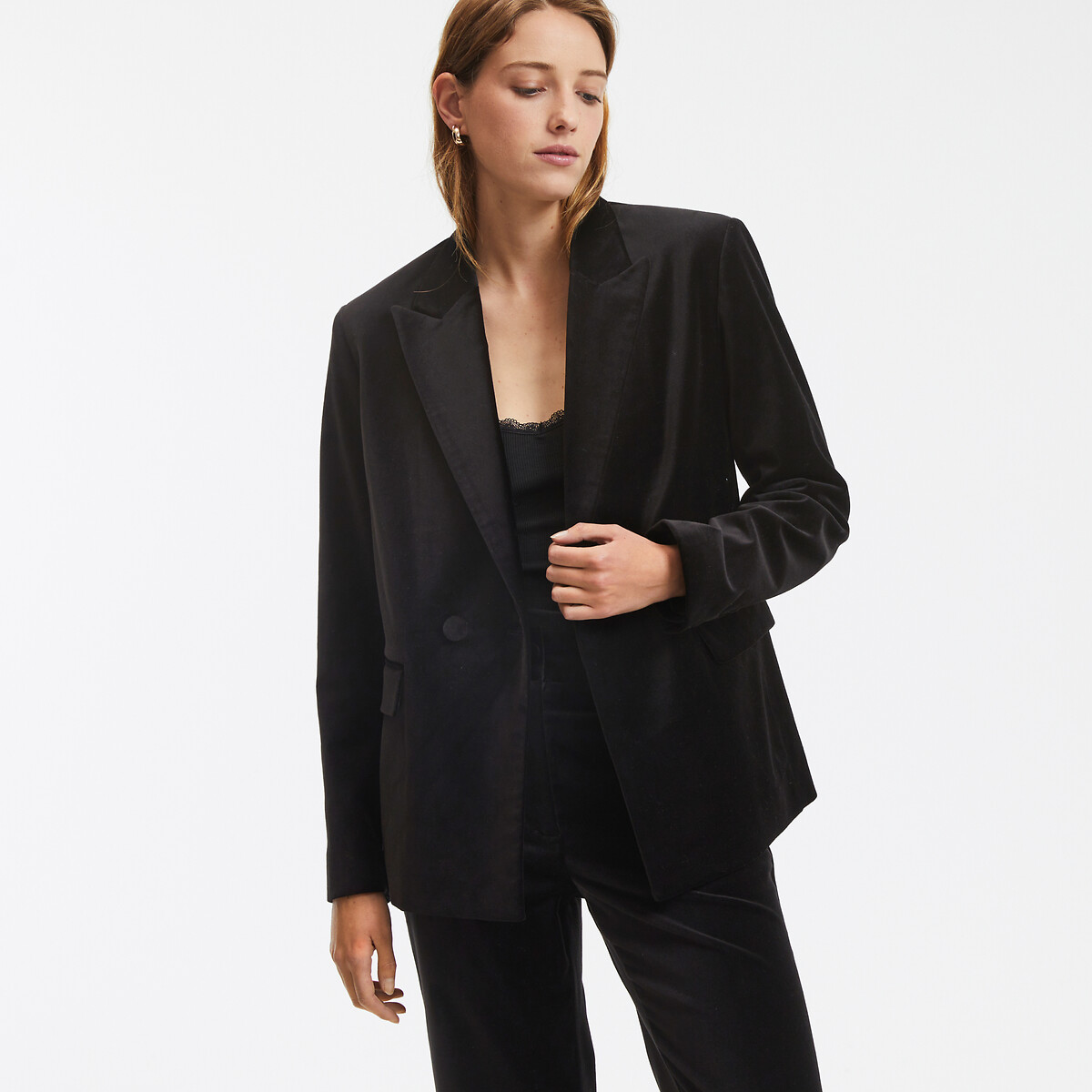 Черный цвет часто ассоциируется с таинственностью и загадочностью. Одежда в стиле Total black не просто следует модным тенденциям, она служит средством для выражения себя. Рассмотрим, как этот глубокий оттенок может стать основой стиля, сочетая в себе утонченность и нотки театральности, идеально подходя для тех, кто стремится придать своему образу драматические акценты. Погружение в мир черного начинается. Бархатный пиджак свободного кроя Черный пиджак из бархата с его просторным кроем станет воплощением изысканности и уюта. Бархатная ткань обладает исключительной мягкостью, а его лаконичная форма обеспечивает совершенный баланс между шиком и практичностью. Насыщенный черный оттенок усиливает эффект роскоши ткани, а свободная посадка добавляет образу воздушности. Этот пиджак — идеальный акцент для тех, кто стремится внести элемент интриги в свой стиль, сохранив при этом ощущение комфорта и уверенности. Этот пиджак станет ярким акцентом в вашем гардеробе, он отлично впишется как