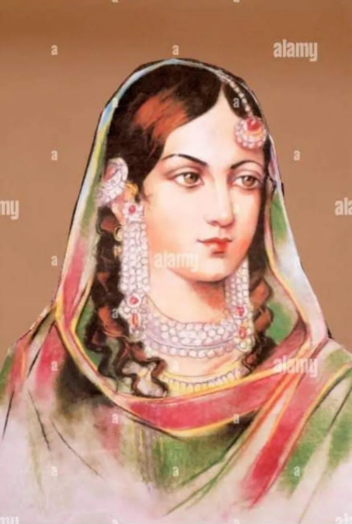 Это история королевы Зинат Махал, супруги короля Бахадур Шаха Зафара, последнего могольского императора Индии. На фотографии изображена именно та самая могольская королева, чьи украденные свадебные украшения стали частью британских королевских драгоценностей, которые носила королева Елизавета II, скончавшаяся в сентябре 2022 года. Королева Елизавета II была потомком королевы Виктории, монарха, который приказал жестоко казнить мужа и сына Зинат Махал на её глазах. По распоряжению королевы Виктории, свадебные украшения Зинат Махал были конфискованы во время печально известного разграбления Лал Кила (Красного форта) в 1857 году, чтобы прославить Британскую империю, которая обагрила себя кровью своих жертв. Когда британцы ссылали короля Бахадур Шаха Зафара в тюрьмы Рангуна (современный Янгон), королева Зинат Махал отказалась разлучаться с ним. Её слова: «Жизнь и смерть с королём» остались в истории как свидетельство её верности и мужества. Зинат Махал было всего 34 года, когда королевска