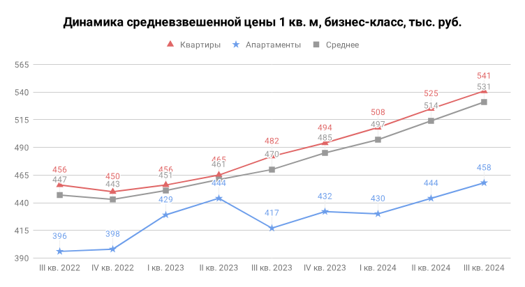 Предложение «первички» бизнес-класса в Москве растет: в III квартале экспозицию пополнили 620 тыс. кв. метров. Однако это не препятствует росту цен. Средняя стоимость 1 кв. метра перевалила за 530 тыс. рублей. За год средневзвешенная цена в новостройках Москвы бизнес-класса выросла на 13% и составляет сейчас 531 тыс. руб. за «квадрат». В течение III кв. 2024 г. средняя цена кв. метра увеличилась на 3%. Цены на строящееся жилье в сегменте бизнес-класса в Москве в старых границах продолжают расти. По данным компании Nikoliers, в III кв. 2024 г. средневзвешенная стоимость квадратного метра в квартирах и апартаментах на первичном рынке столицы достигла 531 тыс. руб., увеличившись за год на 13%. За квартал средневзвешенная цена «квадрата» в столичных новостройках увеличилась на 3%. При этом в сегменте бизнес-класса за квартал вышли в продажи сразу 6 новых проектов и 19 корпусов жилых комплексов, которые уже находятся в реализации, общей площадью более 620 тыс. кв. м. Географически наиболее