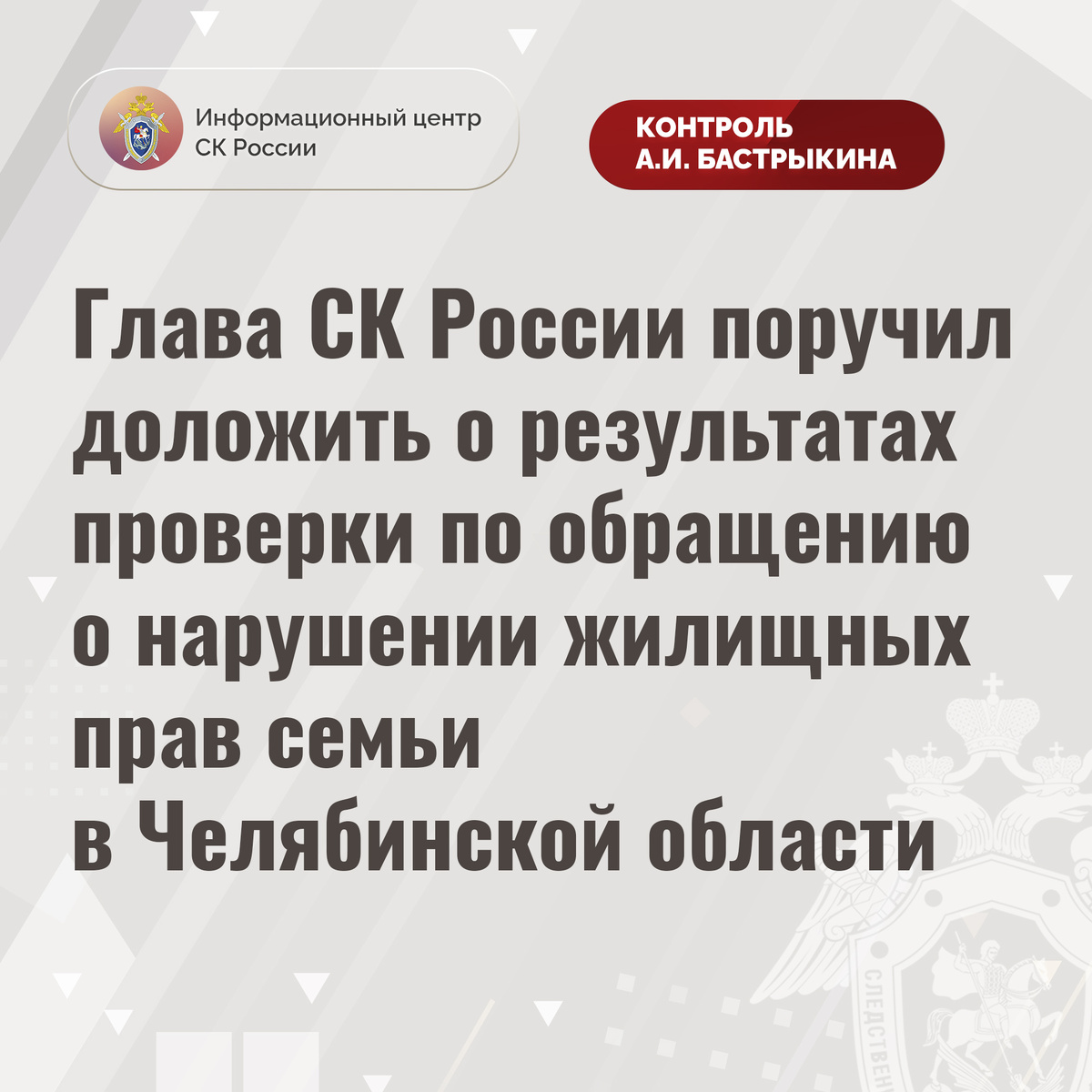 Глава СК России поручил доложить о результатах проверки по обращению о нарушении жилищных прав семьи в Челябинской области