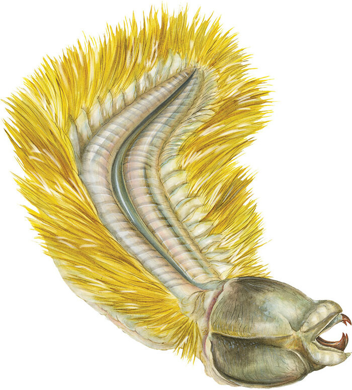 Вообще, это не просто бахрома. Щетинки выполняют функцию плавников, чтобы животина могла с комфортом бороздить просторы океана, а также могут использоваться в качестве ног, если червю приспичит опуститься на дно. Однако, щетинки также выполняют и защитную функцию. Дело в том, что они достаточно плотные и острые, поэтому укусить или заглотить такого червячка мало кто захочет (в океане дураков нет, не то что твой кот, который жрет новогоднюю мишуру каждый Новый год).