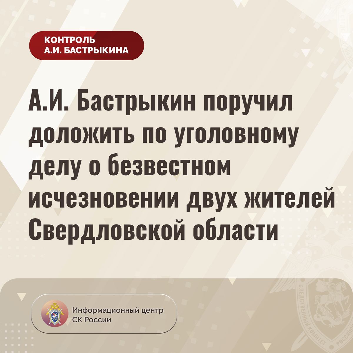 А.И. Бастрыкин поручил доложить по уголовному делу о безвестном исчезновении двух жителей Свердловской области