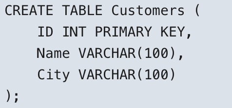 Рассмотрим пример создания таблицы Customers, которая будет содержать информацию о клиентах:
