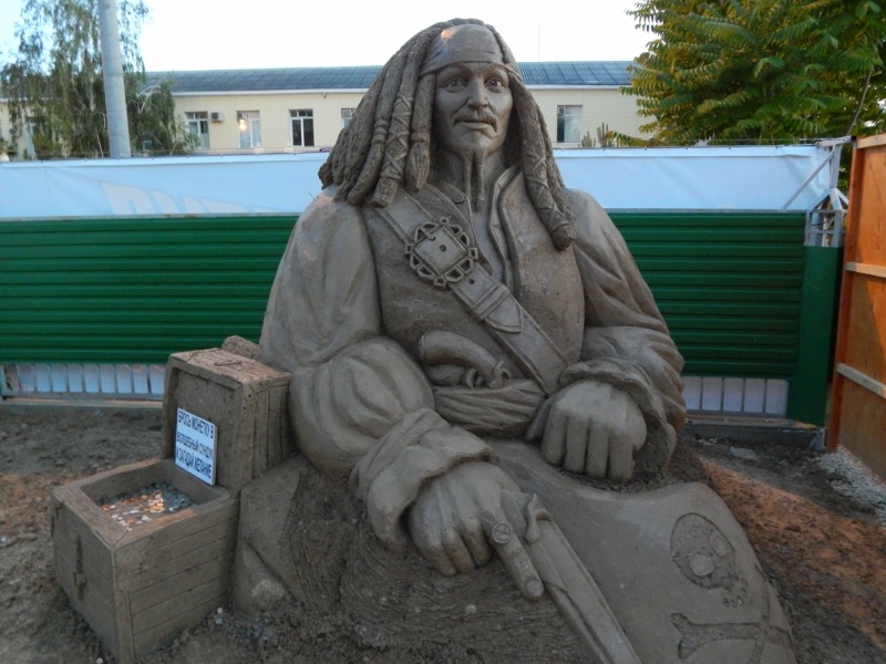 Бывая в прошлое время на отдыхе в теплых российских краях, застал как-то выставку песочных работ местных художников. Профессионалы песчаной скульптуры используют в работе карьерный песок мелкой фракции, который прошёл специальную подготовку и обработку. Его спрессовывают, чтобы придать плотную структуру природного камня песчаника, затем от полученной глыбы отсекают ненужные куски материала, придавая задуманную форму. В конце скульптурную композицию покрывают специальными лаками и клеями, которые в течение нескольких месяцев будут защищать произведение искусства от ветра и дождя. Смотрится просто бесподобно. Фото, естественно, все сняты мною.