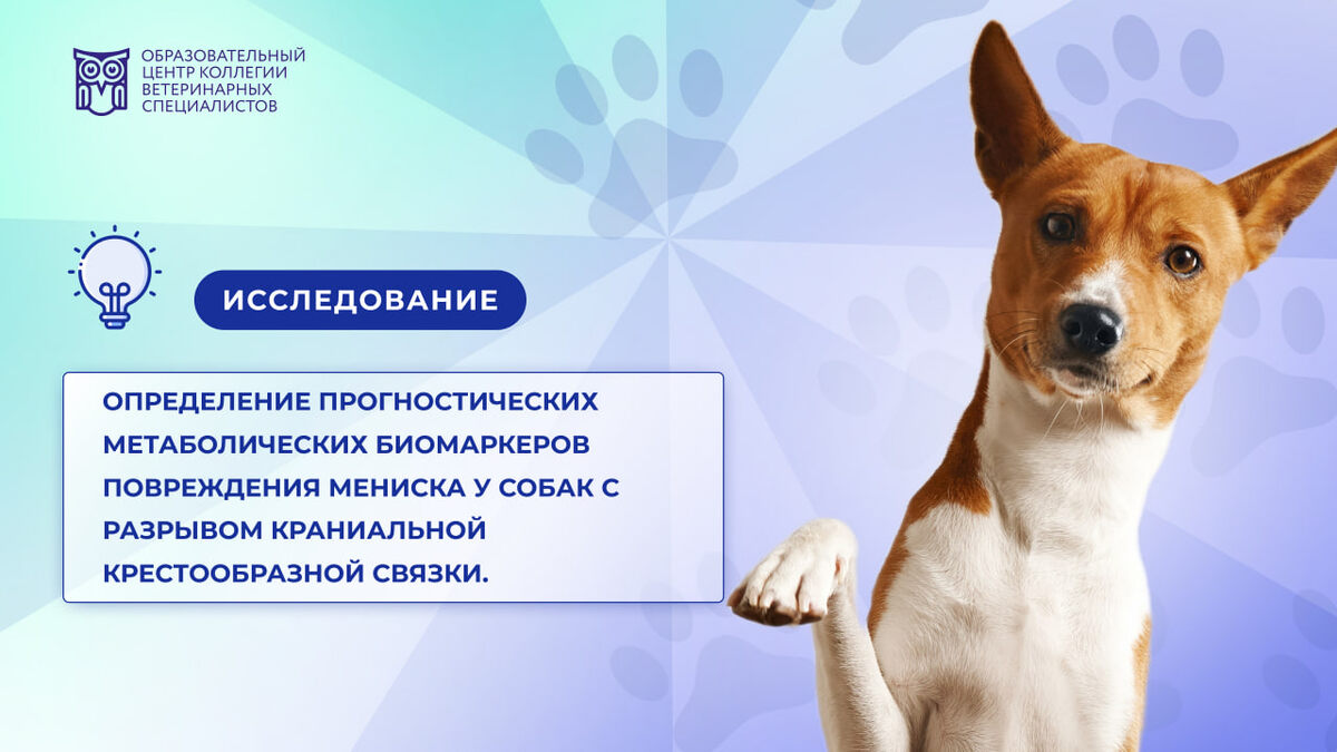Определение прогностических метаболических биомаркеров повреждения мениска у собак с разрывом краниальной крестообразной связки