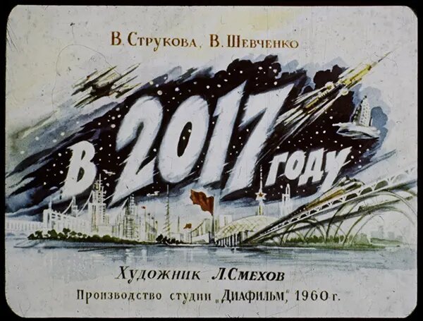 «В год 2017» В. Струковой и В. Шевченко, иллюстрации Л. Смехова, производство киностудии «Диафильм» 1960 г.