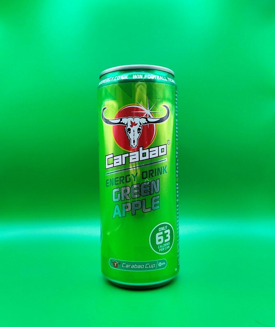 Логотип это череп быка на фоне красного шара с бликом. Баночка вся ярко зелёная, как раз под заявленный вкус, а сверху промо с футболом.