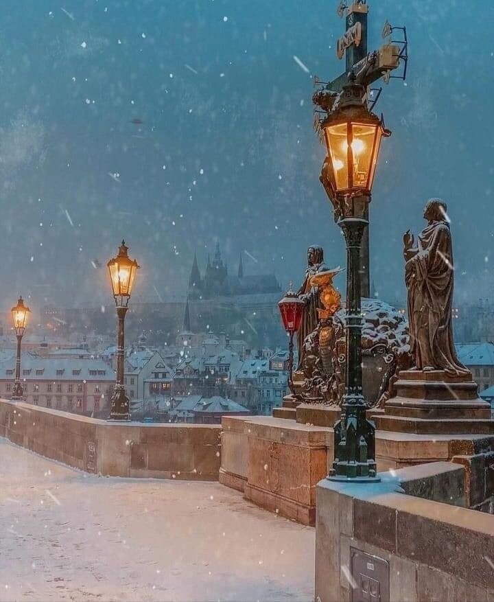 Падал пушистый снег. В мягком свете фонарей кружились снежинки. Старый город, словно по волшебству, превращался в сказочный.