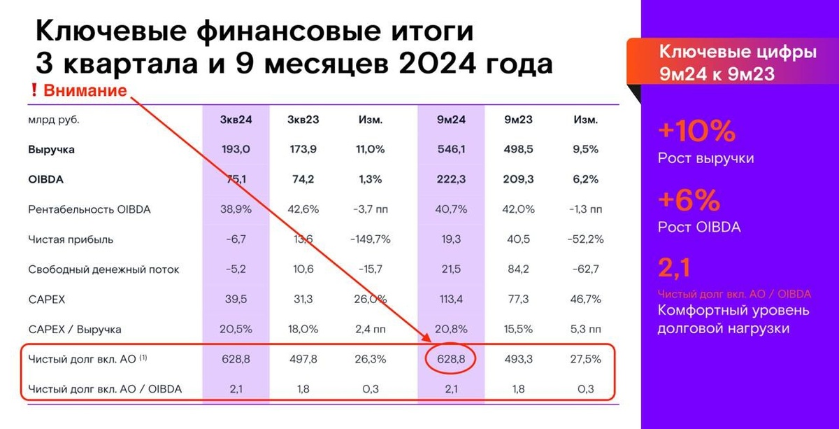 Спрос на услуги ЦОДов в России продолжает расти. Ростелеком - один из ведущих игроков на этом рынке может впитать отраслевой позитив, однако компания «промышляет» не только ЦОДами. Сегодня решил разобрать отчет компании за 9 месяцев 2024 года, по пути прикинув перспективы телекома. Итак, общая выручка Группы выросла за отчетный период на 9,5% до 546,1 млрд рублей, снова завалившись ниже двузначных темпов роста. По традиции отстают кластеры: «Фиксированной ШПД», «Оптовых услуг», «Телефонии» и «Прочих услуг». А вот «Цифровые сервисы» показывают неплохую динамику, +18,8% за 9 месяцев. Дочерняя РТК-ЦОД прибавила 18% по выручке и отражают востребованность кластера. Планы по выводу компании на IPO откладываются, однако глава Ростелекома подтвердил планы вывести «Солар» на IPO уже после РТК-ЦОД. Выручка сегмента «Информационной безопасности» выросла вообще на 63,8% до 11,3 млрд рублей. Правда Басманный районный суд Москвы арестовал главу департамента Центра кибербезопасности и защиты Ростелек