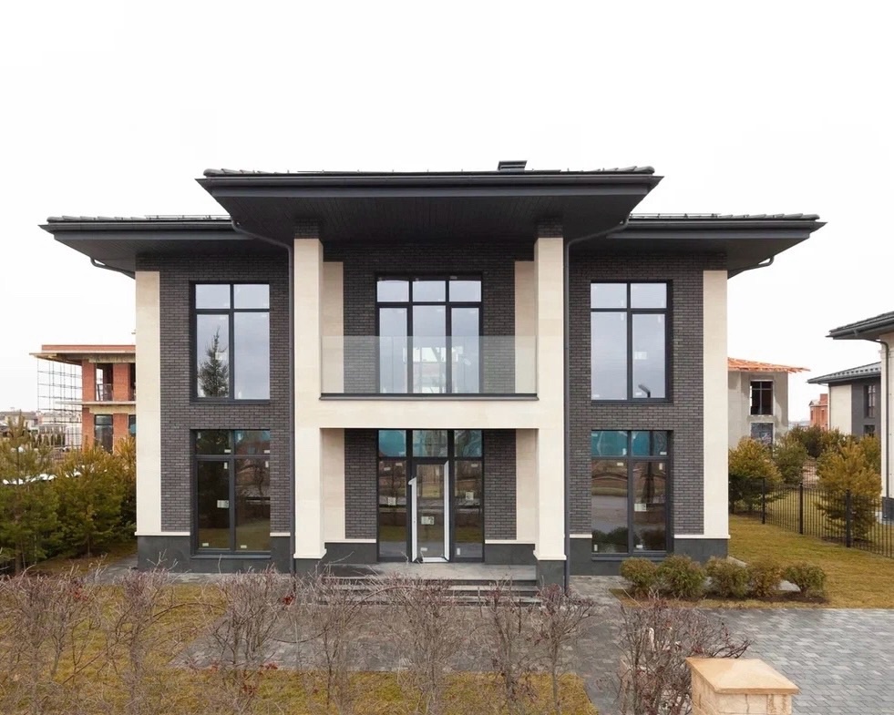 Площадь – 307 кв.м. Участок – 7,56 соток Стоимость – 126 млн ₽ У проекта Марсель есть ключевая особенность – он сделан кратно 51-му блоку, из которого возведены стены. Это позволило нам построить коробку и закончить строительство за максимально короткий срок, о чем мы рассказывали в наших предыдущих постах. У этого коттеджа на фасаде сочетание натурального песчаника и декоративного кирпича @Искусственный камень | White Hills Терамо Брик в цвете 354-90. Теплый серый оттенок сделан на заказ специально для нашего проекта. Это легкий, прочный и долговечный материал с высокой степенью детализации под клинкерный кирпич ручной формовки. Цоколь облицован темно-серым керамогранитом Italon Materia Titano 60*60 см, а на крыше – натуральная черепица Braas в цвет. В доме будет комфортно большой семье – внутри кухня-столовая с островом и выходом на террасу, кабинет, просторная гостиная, 4 спальни с гардеробными комнатами и санузлами, хозяйственные помещения. При желании можно все изменить под свой о