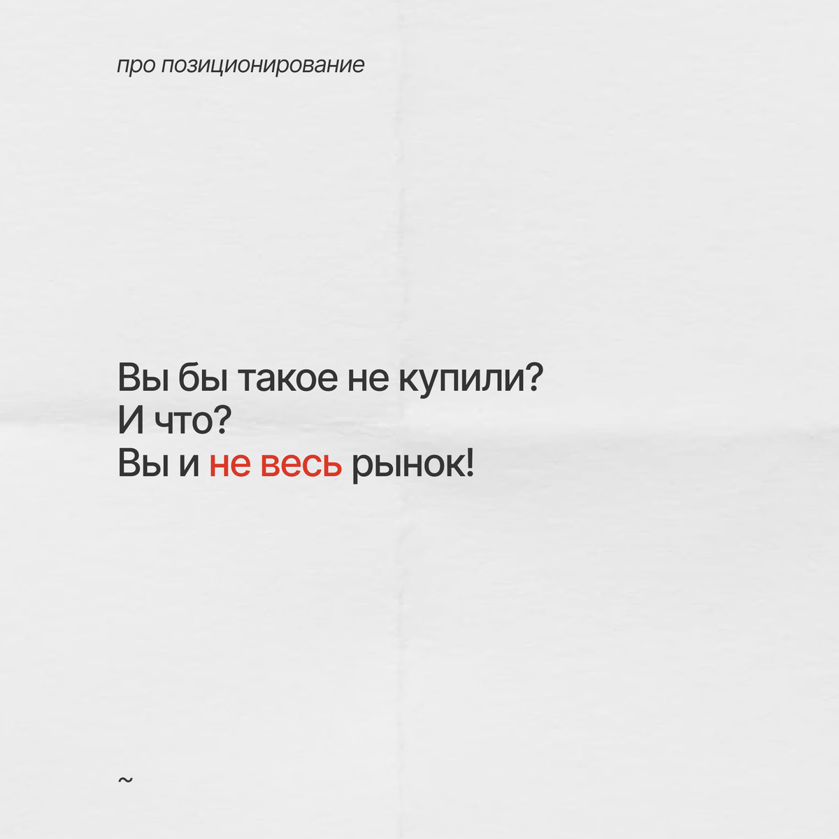 Знаете, что часто мешает бизнесу расти? Мы слишком любим судить о других по себе. Думаем: «Я бы этим точно не воспользовался, значит, никто не будет». И вместо того чтобы предложить клиенту то, что ему действительно нужно, пытаемся продать то, что нравится нам самим. Давайте разберёмся, почему такой подход не работает и как перестать ставить собственные вкусы выше потребностей аудитории. 1. Вы — не ваш клиент Вы можете обожать минимализм, а ваша аудитория — яркие и насыщенные креативы. Или вы привыкли экономить на всём, а ваши клиенты готовы заплатить больше, если получат премиальное качество. Ключ к успеху: думайте не о своих предпочтениях, а о том, что решает боли или желания ваших клиентов. 2. Потребности важнее мнений Представьте: вы продаёте уютные пледы, но сами никогда не сидите дома с кружкой чая. Должно ли это повлиять на ваши маркетинговые решения? Конечно, нет! Люди покупают не то, что важно для вас, а то, что решает их собственные задачи. Вывод: начните с исследования своей