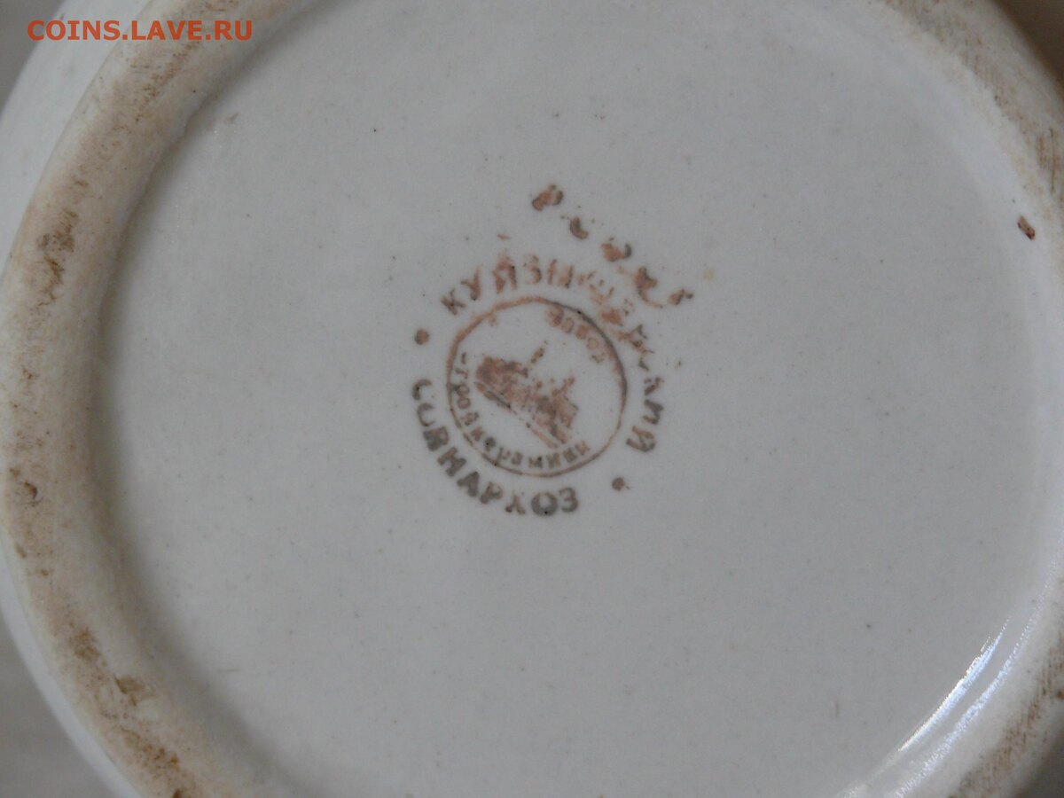 Этот завод неразрывно связан с украинским городом Славянском. Самарская же история началась с 1941-го года, когда сюда эвакуировали завод изоляторов из Славянска. В Куйбышевской области подобное предприятие было первым. И называлось оно тогда "Куйбышевский завод строительной керамики. Совнархоз". Во время войны было не до изысков: выполняли военные заказы; а в 1945-м году на заводе начали выпускать "мирную" продукцию, в основном сантехнику. Тогда же организовали специализированный цех и художественную мастерскую. И в конце 1940 - начале 1950-х годов завод уже выпускал посуду и питьевые наборы из фаянса. Вообще-то с атрибутикой завода есть сложности - нет градации по годам. К этому периоду, видимо, относится следующая марка данного предприятия. В 1950-60-х годах предприятие динамично развивается. Осваивается производство облицовочной плитки и товаров народного потребления: опять же посуда, кувшины, вазы из фаянса и керамики. И заметьте, все изделия завода простые, но интересные. Или вот
