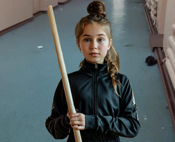 Но Жукова не захотела отдавать швабру. Тогда Ангелина взяла свою швабру и принялась мести летящий мусор в обратную сторону.
