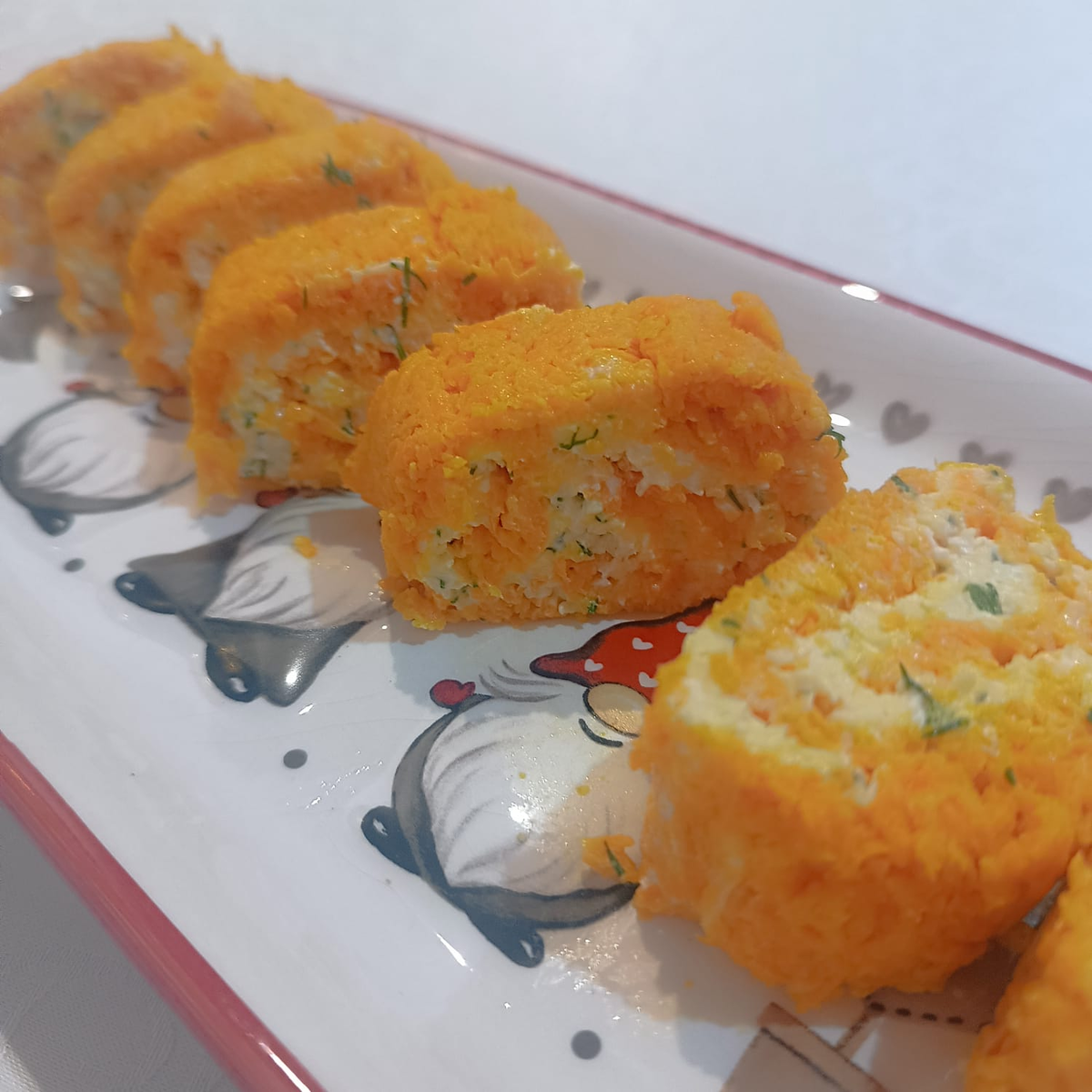 Добрый зимний понедельник ) Нас календарная зима встретила снежком. Весь месяц декабрь уже предпразничный. Некоторые новые для меня новогодние рецепты я предпочитаю попробовать приготовить заранее. В их числе закусочный морковный рулет с сырной начинкой. Шпинатный я уже готовила в прошлом году. Закуски приятная часть праздничного стола, они могут быть разнообразными и порционными, можно попробовать несколько понемногу и не переесть ) В этих рулетах нет муки. Шпинатный рулет с рикоттой и с/с красной рыбой. Отличный закусочный рулет с беспроигрышным сочетанием шпината, творожного/сливочного сыра и красной рыбы слабой соли. Стандартный рулет: 160 гр шпината пробить блендером с 3мя желтками, отдельно взбить 3 белка в устойчивую пену и вмешать в несколько этапов в шпинат с желтками, выложить массу на пергамент (проверенный, коричневый силиконизированный или смазать чуть оливковым маслом) и выпекать 10 мин при температурере 180 градусов. Остудить, смазать рикоттой и разложить тонкие пла