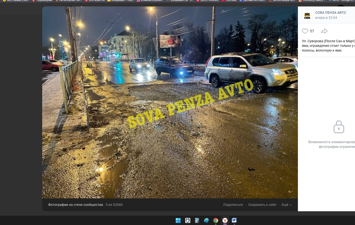В Пензе дороги продолжают вызывать нарекания горожан. Так, очередная яма была замечена в центре города. Предупреждение для автомобилистов появилось в соцсети. Один из пензенцев опубликовал фото, на котором видно огромную яму. Она образовалась на проезжей части на улице Суворова. По словам автора поста, провал появился недалеко от торгового центра. «Ограждение стоит только у правой полосы, вплотную к яме», – указано под снимком. Возможно, дыра стала последствием работы коммунальщиков, либо на улице Суворова вновь начал проседать асфальт над одним из коллекторов. В любом случае автомобилистам стоит быть осторожнее и по возможности объезжать провал. Читайте также: в Пензе светофор на Измайлова перенастроили, но не в лучшую сторону.