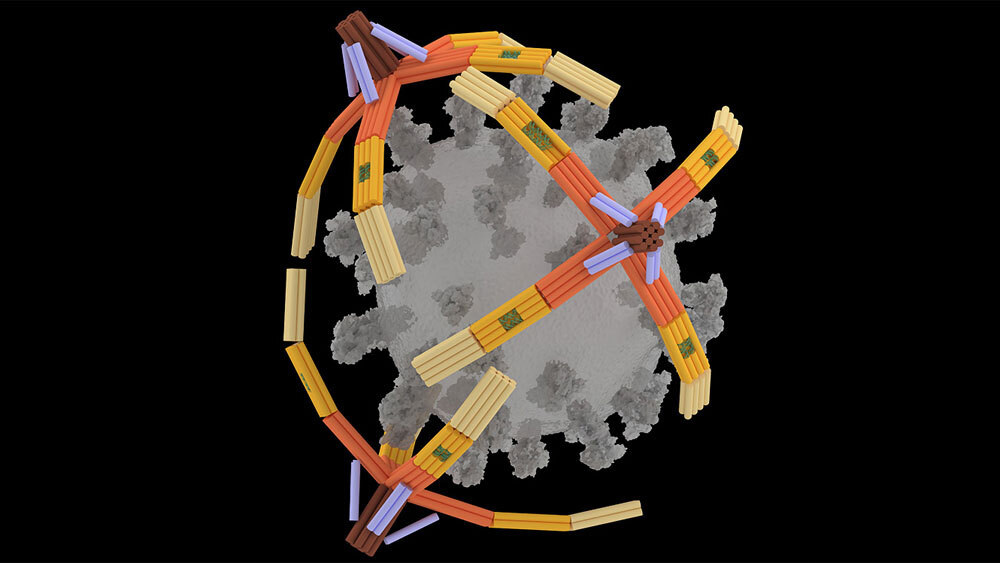 В Иллинойсском университете в Урбане-Шампейне (UIUC) из кусочка ДНК создана крошечная рука, которая может в буквальном смысле схватить коронавирус, чтобы точно диагностировать COVID-19. Разработка под названием NanoGripper описана в журнале Science Robotics. Вдохновленные силой захвата человеческой руки и птичьих когтей, изобретатели сконструировали наноструктуру с четырьмя пальцами по три сустава в каждом, угол и степени свобод которых обусловлены исходным материалом. «Мы используем ДНК из-за ее структурных свойств. Она прочная, гибкая и программируемая. Однако даже в области ДНК-оригами это новинка с точки зрения принципа дизайна. Мы складываем одну длинную нить ДНК вперед и назад, чтобы сделать все элементы — как статические, так и движущиеся — за один шаг», — пояснил Син Ван, профессор биоинженерии и химии в UIUC. В пальцах есть ДНК-аптамеры, запрограммированные на связывание с молекулярной мишенью — спайковым белком коронавируса. Запястьем рука крепится к поверхности или другой бо