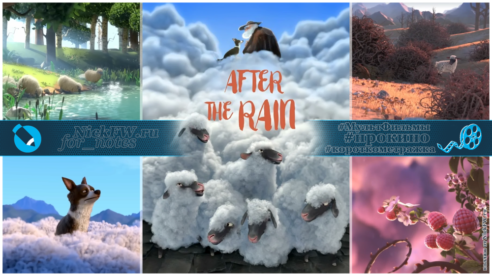 Жанр: мультфильм, короткометражка В долине с зелеными пастбищами живёт старик со своим псом и отарой овец. Пёс следит за овцами, а когда приходит время, приводит к пастуху очередную овцу на постриг... а из пушистой шерсти старик делает облака... ... чтобы жизнь продолжала существовать. Однако, пастух не вечен, и однажды его не стало... Постепенно долина начала превращаться в пустыню без дождя, и тогда пёс стал искать варианты, исправления ситуации. Посмотрите этот мультфильм, он длится всего 9 минут: Черкните пару слов в комментариях... © Николай Патрин: «После дождя...» ((-: коллаж составлен из кадров мультфильма и постера честно стыренного с кинопоиска :-))