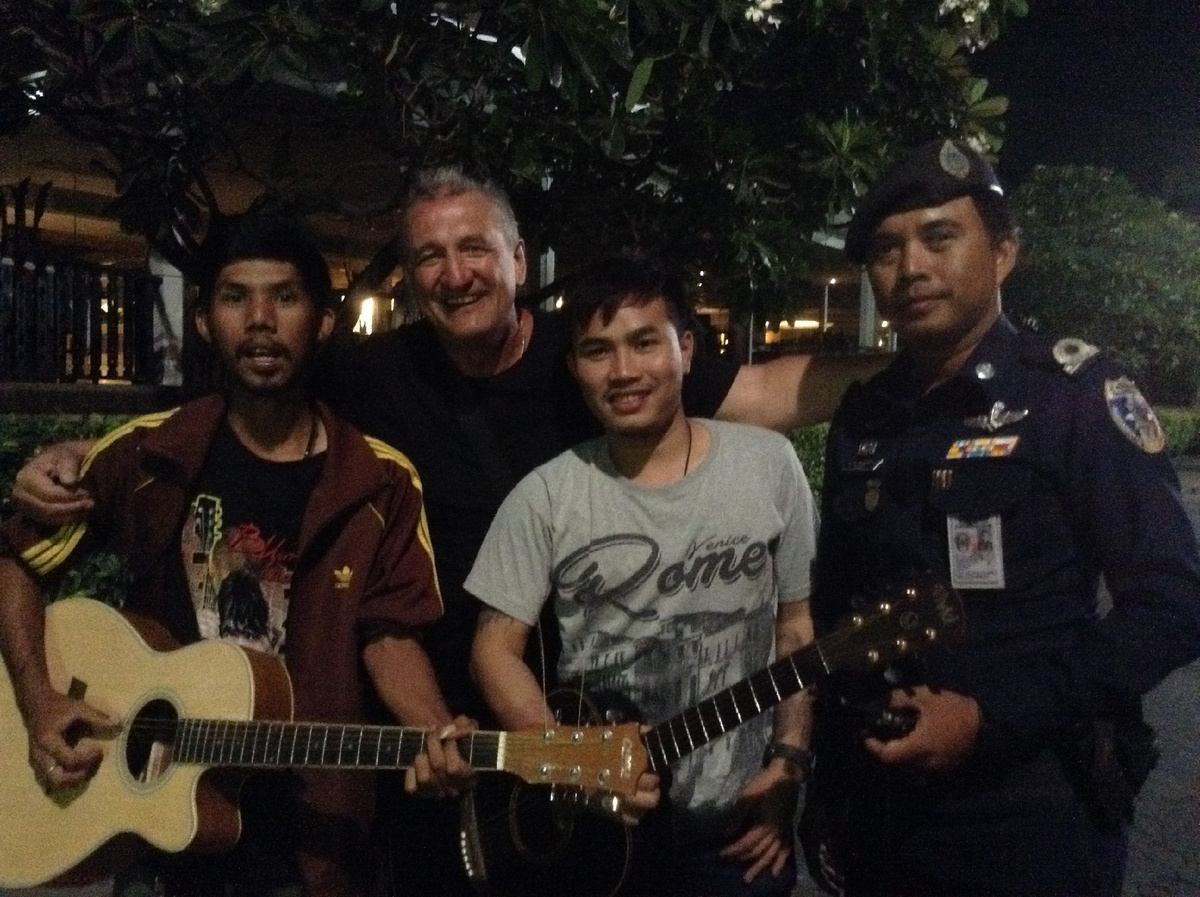 Один из парней протянул ему инструмент. Ну, а дальше… Песни из репертуара Осина, «Цветов», дворовые песни нашей молодости, звучащие под тайским ночным небом, привлекли внимание туристов, которые окружили исполнителя. Лежащий у ног музыкантов футляр стал понемногу наполняться. Наконец, гитара вернулась к своему владельцу, вслед за этим раздались бурные аплодисменты.
