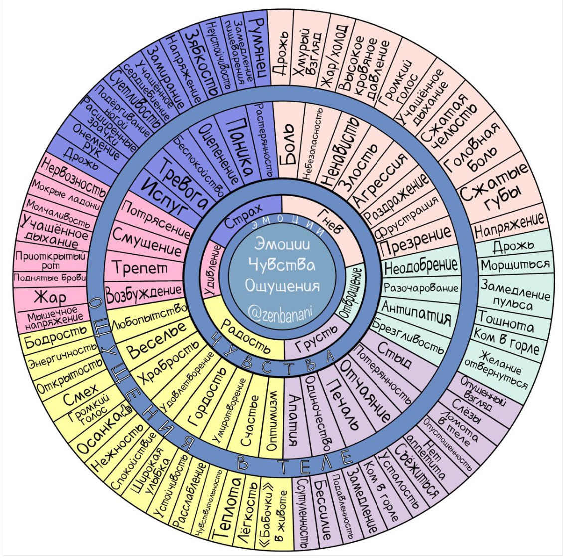 Каждый день я буду делиться здесь важными практиками, так что подписывайтесь, чтобы не пропустить ни одной ✋🏼 ВТОРАЯ ЧАСТЬ. Сегодня делюсь упражнением «Цвет эмоций» Колесо эмоций Вам, как подсказка. Цель упражнения: Иногда мы оказываемся полностью погруженными в свои эмоции, и в такие моменты они начинают управлять нашей жизнью, как будто в обход нашего желания. В результате, мы можем принимать решения, о которых впоследствие очень жалеем. Поясняю как это происходит - в такие периоды чаще всего теряется ясность ума, так как наш рациональный неокортекс не функционирует должным образом, становится слабее, а лимбическая система, которая не такая логичная и рациональная, наоборот становится сильнее, что и приводит к затоплению эмоциями. Чтобы избежать негативных последствий, крайне важно научиться распознавать такие катастрофические моменты и возвращаться к состоянию равновесия и адекватности. Для этого предлагаю использовать психологическое упражнение. Как выполнять: Важно м