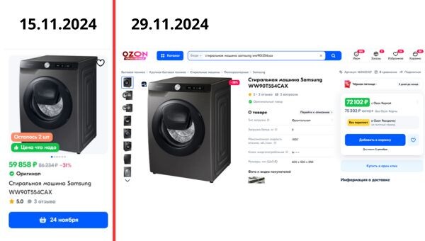 Итак, настал тот самый день самых больших скидок! Давайте проверим, все ли продавцы честны со своими покупателями. 15 ноября я написала статью про историю самых крупных распродаж и зафиксировала цены на товары в разных магазинах из категорий: техника (стиральная машина Samsung), парфюмерия (Lost Cherry Tom Ford, 30 мл), товары для сада (Сарай "Дарвин 4х6"). Настало время сравнить. Поехали! Кстати, в конце будет один очень полезный лайфхак, советую досмотреть статью. OZON - БЫЛО 59 858 руб. / СТАЛО 72 102 руб. Цена выросла на 20% Яндекс Маркет - БЫЛО 62 610 руб. / СТАЛО 71 539 руб. Цена выросла на 14% М-видео - БЫЛО 72 999 руб. / СТАЛО 72 999 руб. Цена не изменилась. Купер - БЫЛО 74 999 руб. / СТАЛО 72 365 руб. Единственный из наших примеров, где цена стала ниже, аж на 3%. Золотое яблоко - БЫЛО 21 675 руб. / СТАЛО 21 675 руб. Цена не изменилась. Рив Гош - БЫЛО 21 675 руб. / СТАЛО 21 675 руб. Цена не изменилась. Яндекс Маркет - БЫЛО 28 846 руб. / СТАЛО 33 898 руб. Цена выросла на 17% Ц