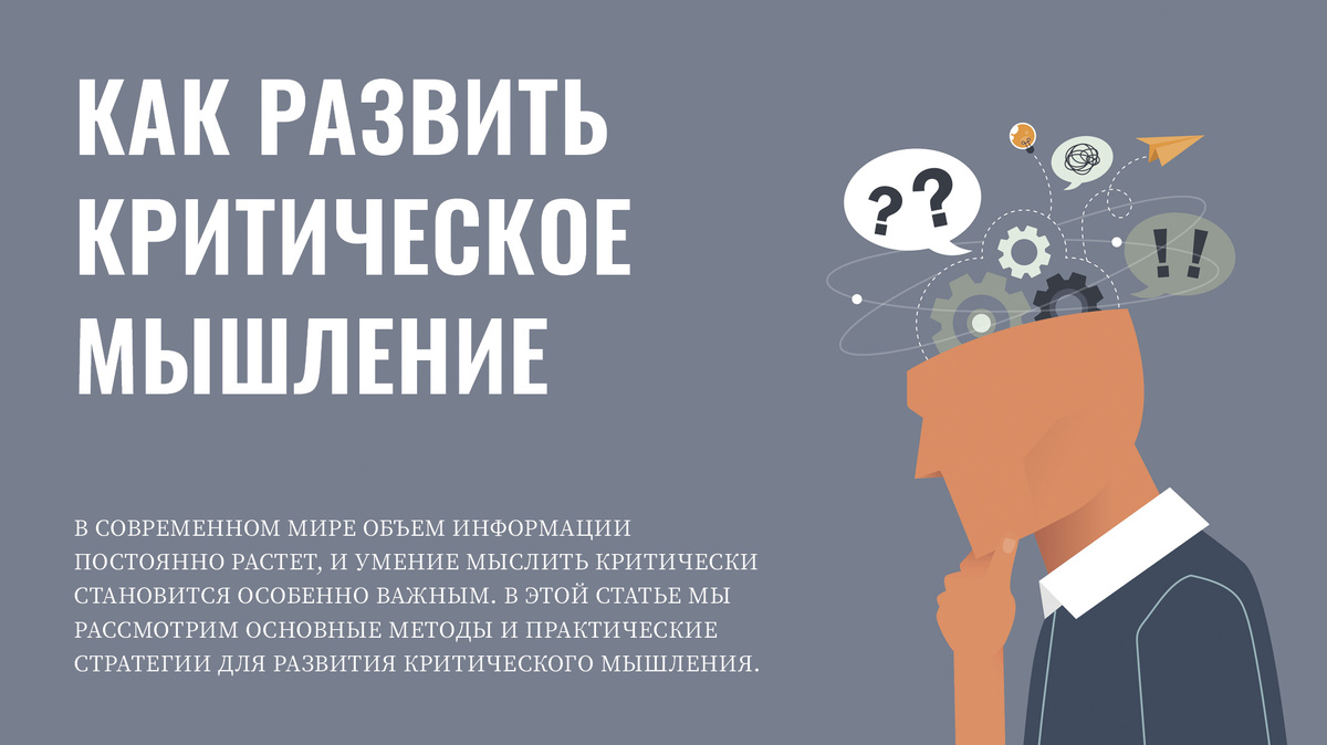 В современном мире объем информации постоянно растет, и умение мыслить критически становится особенно важным. В этой статье мы рассмотрим основные методы и практические стратегии для развития критического мышления. Критическое мышление – это способность анализировать информацию, делать выводы и принимать решения на основе логики и доказательств. Основные компоненты критического мышления: Анализ: разделение информации на составляющие части и изучение их взаимосвязей. Оценка: определение достоверности и значимости информации. Интерпретация: объяснение значения информации и выводов на ее основе. Инференция: формирование логических выводов на основе имеющихся данных. Так как же можно развить у себя критическое мышление? Чтение Только не постов в соцсетях, а научных статей, классической литературы и других текстов, требующих мыслительного процесса. Анализ содержания, выявление ключевых аргументов и их критическая оценка помогают улучшить навыки мышления. Читая научные публикации, старайтесь