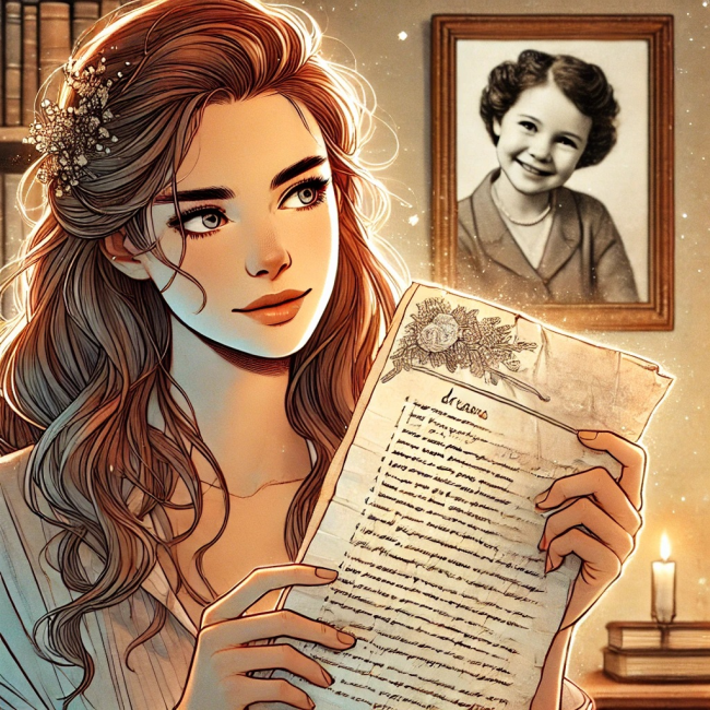 "Здравствуй, моя любимая Ариша! Если ты читаешь это письмо, значит, меня уже нет в живых, и со дня моей смерти прошло уже 40 дней. Я специально выбрала эту дату, чтобы ты уже успела прийти в себя после всего. Думаю, ты уже обнаружила список целей. Ну, конечно, ты ведь всегда была очень любопытной. Родители иногда даже говорили, что слишком. А я вот всегда была уверена, что именно благодаря своим упорству, целеустремленности и любопытству ты сможешь добиться всего, чего хочешь. Наверное, некоторые из этих желаний показались тебе странными или смешными, и ты не знаешь, как их исполнить. Но я уверена, у тебя все получится! К тому же, детские мечты, чаще всего, самые верные". - Любящая тебя всегда, твоя бабушка Надя.