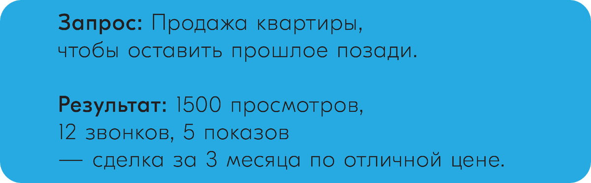 Я не «бью из пушки по воробьям». С самого начала работы с объектом я провожу детальное исследование. Анализирую все предложения в районе, иду от общего и к частному сужа круг, выявляя всех конкурентов. Так я понимаю, кто может быть моим покупателем. Затем запускаю персонализированные офферы для каждого сегмента возможных интересантов, чтобы максимально точно и эффективно достучаться до своей целевой аудитории.