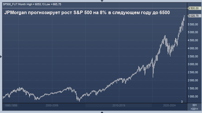 JPMorgan прогнозирует рост S&P 500 на 8% в следующем году до 6500