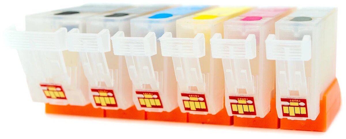 Оснащены специальными чипами, которые автоматически сбрасывают уровень чернил при достижении определённого количества напечатанных страниц или после извлечения/установки. Просты в эксплуатации: не требуют стороннего ПО для сброса чипов. Подходят для принтеров, где важно минимизировать вмешательство пользователя.