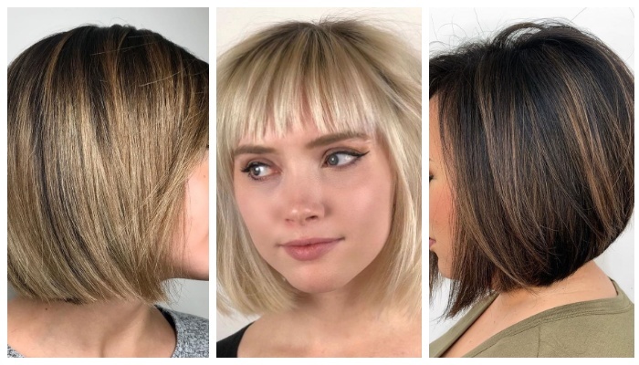 Стильным трендом стала короткая стрижка blunt bob! Обычно она приходится на уровень чуть ниже мочек ушей, опускаясь до "угла молодости". Стрижка имеет ровные края, в задней части головы всегда остается объем, что делает эту стрижку универсальной для всех типов волос, включая тонкие. Способ достижения идеально гладкой и ровной стрижки - высушить волосы феном и круглой щеткой, проводя движения сверху вниз. Важно сушить каждую прядь по отдельности. Blunt bob с рваной челкой выглядит чуть более современно и свежо. Отличный вариант для юных девушек. Если вам нужна прическа, корректирующая некоторые черты лица, то "перевернутый боб" подойдет как нельзя лучше. Более длинные пряди обрамляют лицо и отвлекают внимание от крупного носа, а короткие многослойные пряди на затылке создают невероятный объем. Blunt bob может быть ровным и гладким без слоев, но с четким срезом. Пусть мастер слегка профилирует самые кончики волос, чтобы они лежали мягко и естественно. Асимметричный фасон и модная пляжная