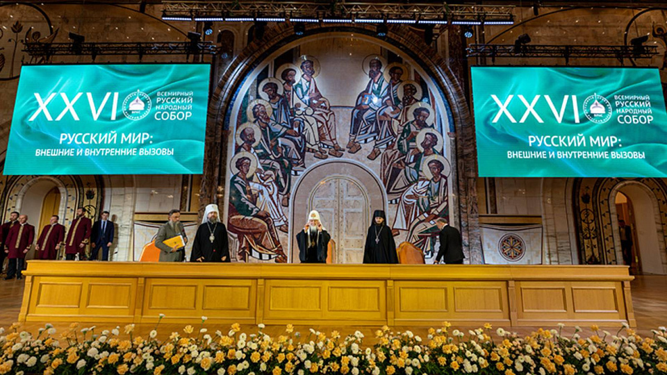28 ноября в зале церковных соборов Храма Христа Спасителя в Москве под председательством главы Всемирного русского народного собора Святейшего Патриарха Московского и всея Руси Кирилла состоялось пленарное заседание XXVI Всемирного русского народного собора на тему "Русский мир: внешние и внутренние вызовы".