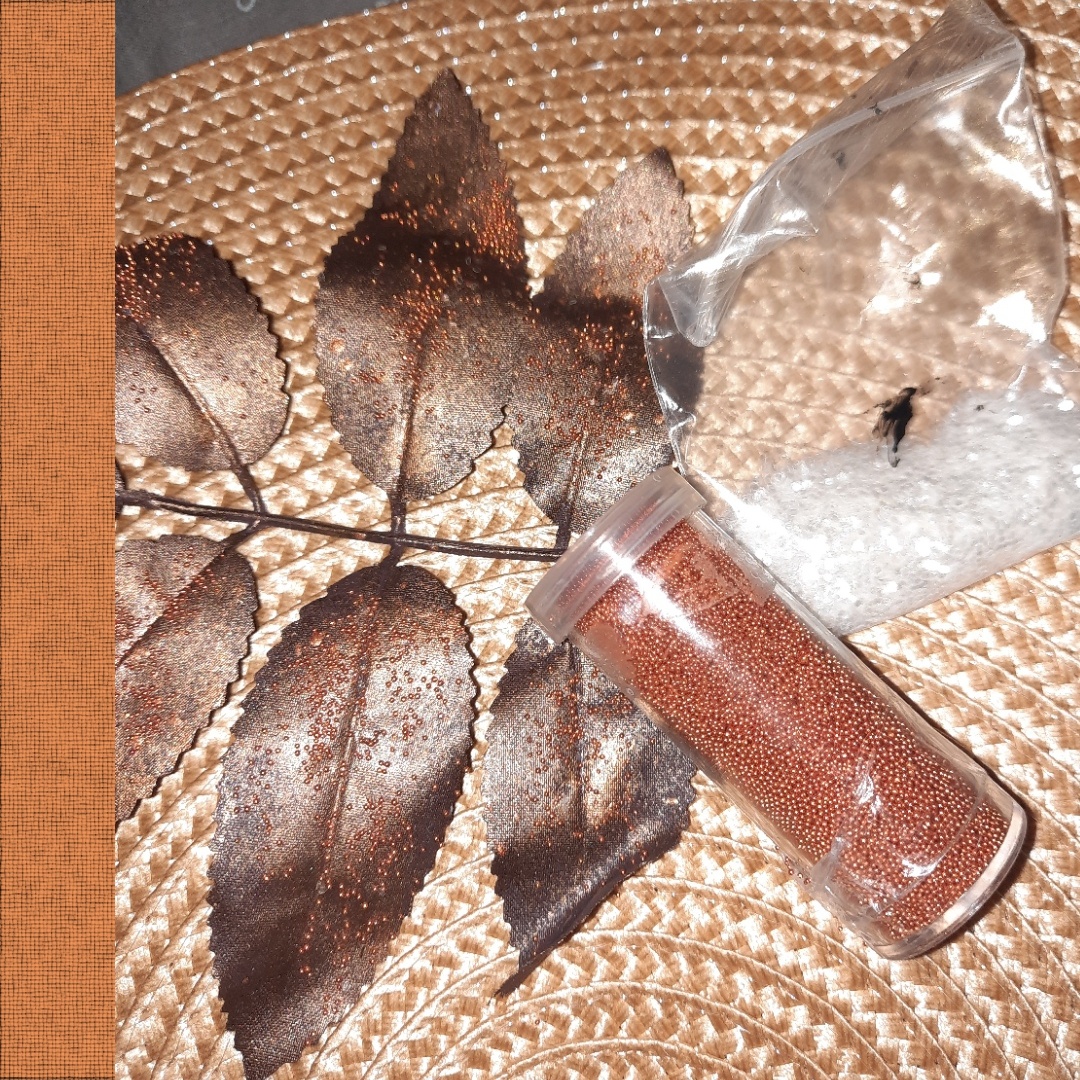 Естественно бывает и золотой, и жемчужный. Но вот последний мне купить не удалось, как и белый, разобрали, наверное. За счет того, что он очень легкий, прекрасно застревает в краске, в лаке, в клее ПВА, даже в тонком слое.