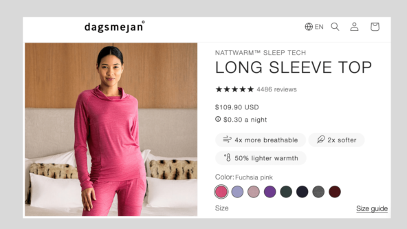 Руководствуясь этой логикой можно снижать цены, стимулировать продажи акциями, скидками и бонусами. Но владельцы бренда Dagsmejan придумали кое-что интереснее. Пижама – это одежда которую ты носишь каждую ночь, то есть 356 дней в году. Почему бы вместе с ценой не указать стоимость пижамы за одну ночь?