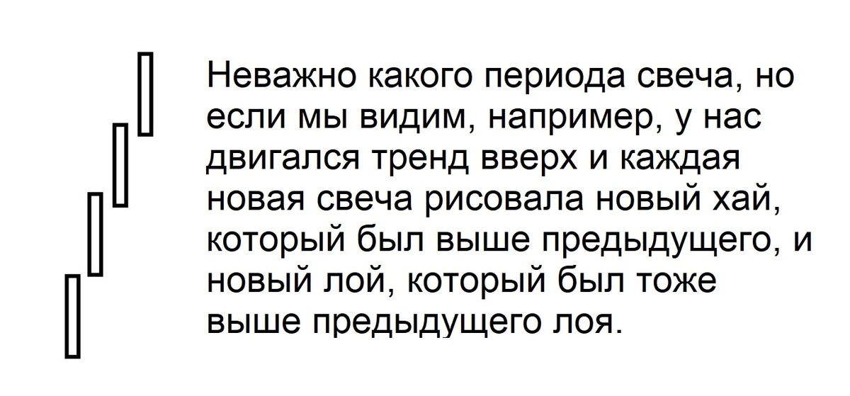 Очень важный момент в торговле заключается в том, чтобы понять, в какую сторону в данном случае собирается двигаться рынок. Есть всего два направления, вверх и вниз. Так вот, для входа в сделку необходимо найти место, которое является границей тренда. Это фундаментально важная вещь. Можно эту границу тренда начала видеть где-то в начале, скажем, длинного движения. Это тогда, когда мы видим, что произошел импульс, например. И внизу этого импульса мы видим, где это начало тренда. При этом такую же границу тренда можно видеть просто на свечном графике, просто глядя на свечной анализ нескольких свечей. ( Конечно же мы должны видеть тенденцию старшего тренда, мы должны видеть либо это вверх идет тенденция, либо вниз.) И уже в соответствии с пониманием того, куда у нас движется старший тренд, мы можем понимать в данной текущей краткосрочной ситуации в отношении всего там двух — трех свечей, куда в данный момент хочет идти рынок. Как мы это видим? И мы ждём ситуацию, когда у нас рисуется нов