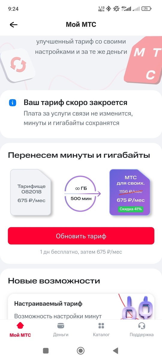 Новый чудо тариф имеет скидку 41% и даже стоимость та же самая. Только те кто пользуются МТС знают, что акции со скидками заканчиваются. Вот и выходит, что через 1-3 месяца вас вынудят либо платить больше, либо уйти с безлимитного тарифа. Варианта отказаться от перехода у вас нет, либо этот новый чудо тариф, либо любой другой.
