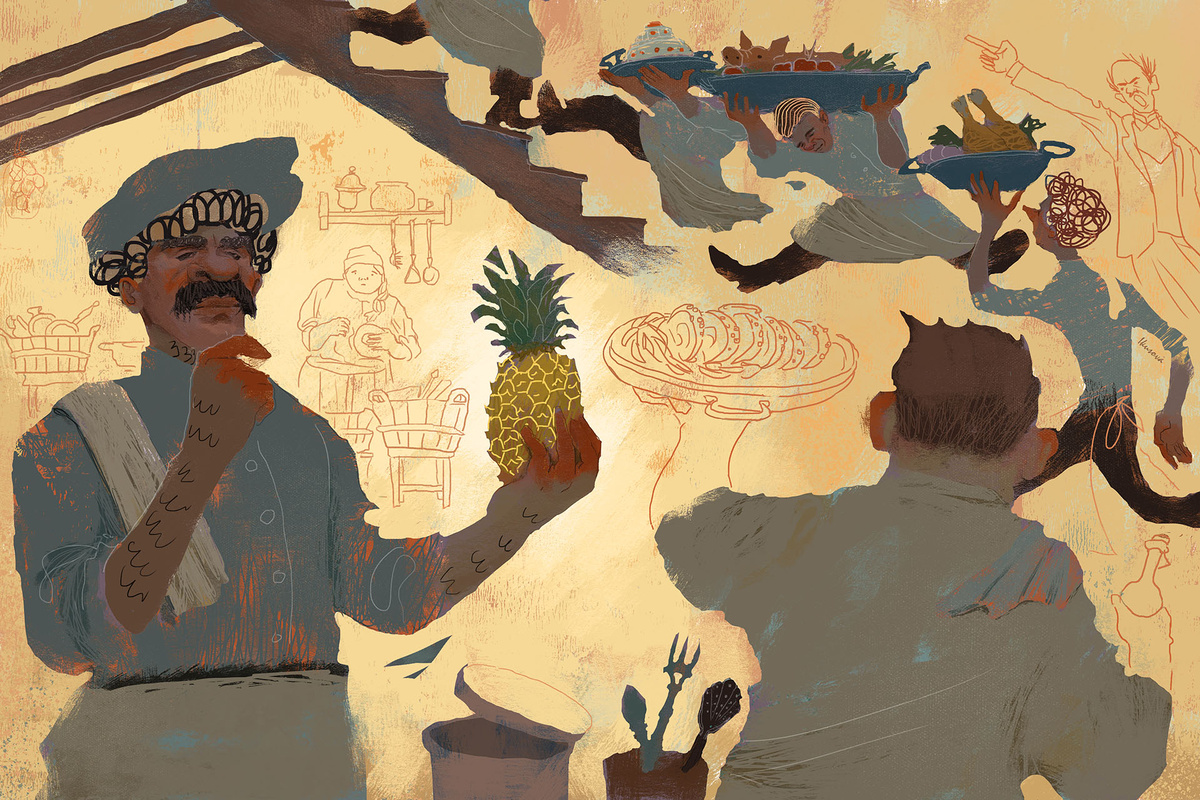 Вишь зараза какая? Ананас! Дерюгин из самого Петербургу выписал! На банкет по случаю — хер пойми какому. Не помню. Купчишки собираются. На полторы сотни рыл банкет, и, вишь, ананас им подавай. Так я вот чего решил — мороженого им собьем, и в каждую креманку — ломтик этого самого ананаса. Чисто для аромату. Все одно пьяные будут, ни пса не разберут. Вот только хватит ли?