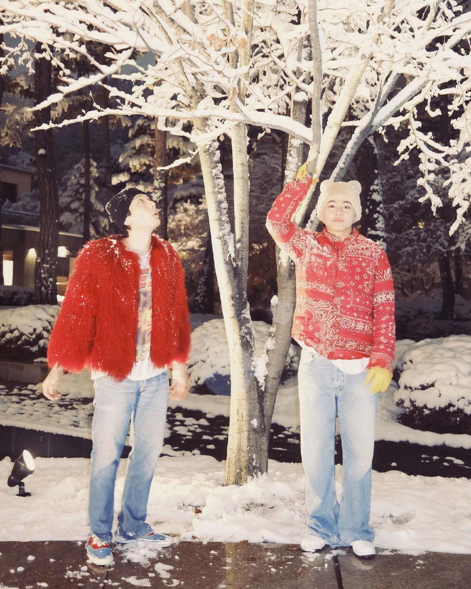 Новости BTS 💜 Ви (V) из BTS и Пак Хёшин радуются первому снегу. Новые фото