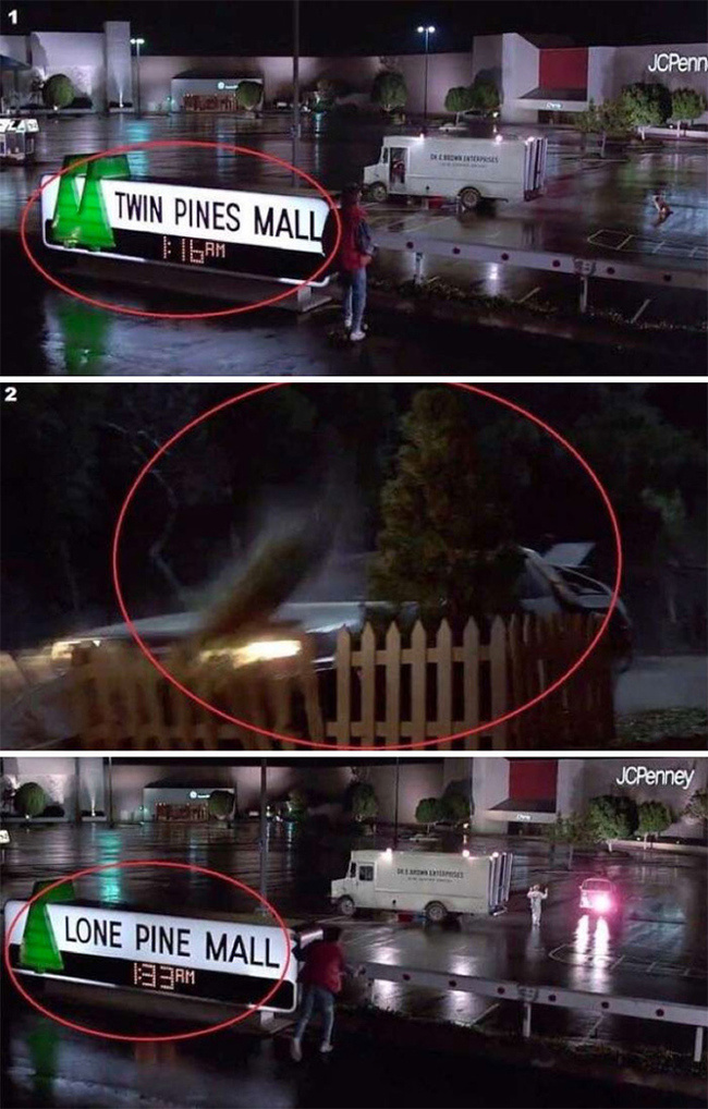 Наша любимая пасхалка, ну, или тайный намек на то, что авторы фильма бережно относятся к своей истории и отслеживают все нюансы временных парадоксов. Название супермаркета «Двойные сосны» само поменялось на «Одинокая сосна», после того как в прошлом одну из них снес Марти. Среди космического мусора, если не моргать, можно четко разглядеть самый первый советский космический аппарат — «Спутник-1». Пустячок, а очень приятно)))) После провокации обиженный священник на самом деле не исчезает из фильма. Он обнаруживается в подвале в толпе инициированных. Ты никогда не замечал, что с каждой следующей серией поттерианы вступительная заставка Warner Bros. приобретала все более мрачный оттенок? Кстати, эта заставка постоянно подвергается трансформациям в самых разных кинопроектах. Еще в начале фильма на кухне главного героя можно приметить флакон витамина D, который рекомендуется люд