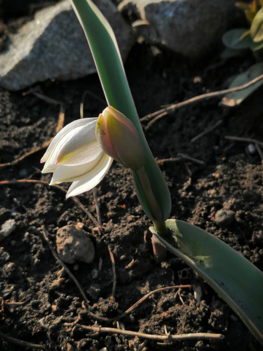 Не все тюльпаны согласны жить в моем саду. Один из проблемных - Tulipa biflora, он же callieri, он же koktebelica, он же polychroma. Откуда у этого вида столько названий-синонимов, нигде не объясняется. Или я не нашла. По-русски их тоже ничуть не меньше. Тюльпан двуцветковый, или Тюльпан двухцветковый, или Тюльпан Калье, или Тюльпан коктебельский, или Тюльпан многоцветный. Ну и, естественно, кто как хочет, тот его так и называет. Я получила его под именем "полихрома" и долго чесала в затылке, пытаясь понять, что ж это такое. Кстати, почему он у меня капризничает, я не знаю - ареал его распространения широк, и нигде не написано, что он должен расти на сухом склоне. Наоборот, он вроде плохо переносит засуху. И затенения и задернения (это он тоже не любит), там, куда я его определила, нету. А вот поди ж ты - луковицы сгнили. Я это знаю точно, потому что копалась вокруг единственной проросшей, и нашла гнилые ошметки. Жалко неимоверно, потому что этот тюльпан, как по мне, хорош несказанно: